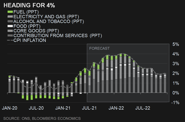Esta semana hemos conocido también que el Banco de Inglaterra espera que la inflación del país termine el año en el 4%, aunque prevé que después caiga rápidamente, los analistas de Bloomberg sin embargo esperan que esa caída de la inflación, sin embargo, sea más lenta. Bloomberg también ha elevado sus previsiones de inflación para Inglaterra del 3,20% al 4%.