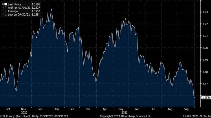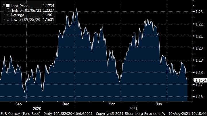 En Estados Unidos el viernes de la semana pasada conocimos la tasa de desempleo estadounidense de Julio, que se situó en 5.4%, dato mejor de lo esperado. Dato que avivó las expectativas de que el banco central comenzará a reducir los estímulos a la vez que está luchando con la inflación. El presidente de la Fed de Dallas, Robert Kaplan, se sumó a la especulación el viernes, diciendo que apoyaría ajustar las compras pronto, pero de forma gradual, también habló el presidente de la Fed de Atlanta, Bostic, que sin embargo apuntó a un inicio del tapering en otoño, y a un ritmo mayor que en ocasiones anteriores. Como consecuencia de estas declaraciones de miembros de la Fed el dólar ha seguido apreciándose, actualmente cotiza a 1,17 dólares por cada euro. El tipo de cambio en junio ha estado en 1,20 dólares por cada Euro, en Julio ha llegado a 1,18 y ahora en agosto se sitúa más fuerte en 1,17.