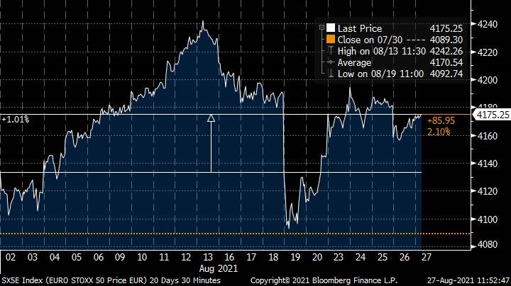 Esta semana la atención está en Jay Powell y en su discurso de Jackson Hole, el mercado espera que nos dé pistas sobre el calendario y el tipo de reducción que la Reserva Federal de Estados Unidos está planeando. La comparecencia de Jerome Powell, tendrá lugar hoy viernes a las 16:00h. Toda la atención estará en cualquier anticipo sobre cuándo y cómo se producirá el tapering, cuyo anuncio oficial podría no obstante tardar algo más en llegar, a la vista del avance de la variante Delta, que está provocando cierta moderación en los últimos indicadores adelantados de ciclo, y que incluso ha provocado modificaciones en la organización del simposio (mascarillas, mayor distancia social). El hecho de que Powell realice su discurso en formato virtual (y no presencial) hace también dudar de importantes anuncios en este simposio.