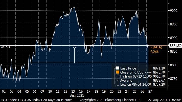 En este mes de agosto de volúmenes en Bolsa muy bajos los índices bursátiles han terminado subiendo en torno a un 1%.