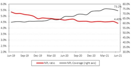 Los datos desglosados reflejan que también disminuyó la ratio de dudosos del conjunto de entidades de depósito (bancos, cajas y cooperativas), que pasó del 4,48% en mayo al 4,34% en junio.