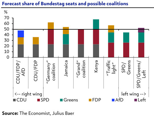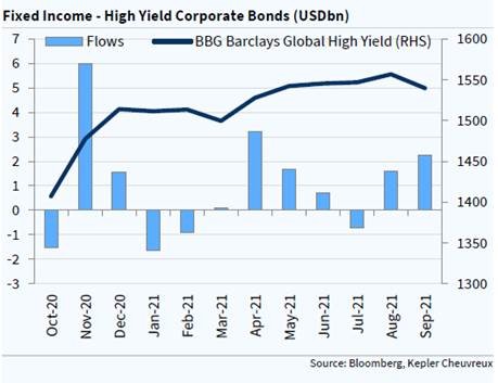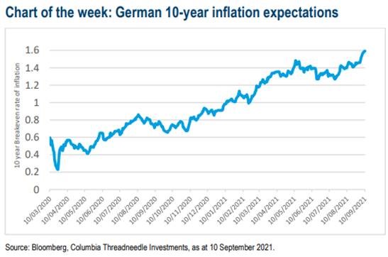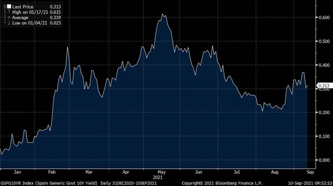 Como dije la semana pasada, el Congreso estadounidense llegó a un acuerdo para aumentar el techo de gasto hasta principios de diciembre, lo que anuncia un noviembre movido con la aprobación del presupuesto, el paquete de infraestructuras y la suspensión o incremento importante del techo de gasto encima de la mesa. Mientras tanto la in inflación descontada por el mercado a 10 años subió al 2.5%, el nivel más alto desde mayo. El nivel del bono a 10 años aún no justifica asumir riesgo de duración.