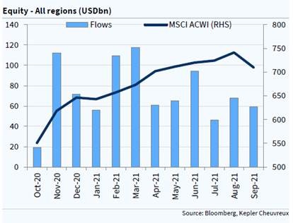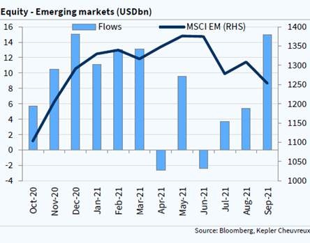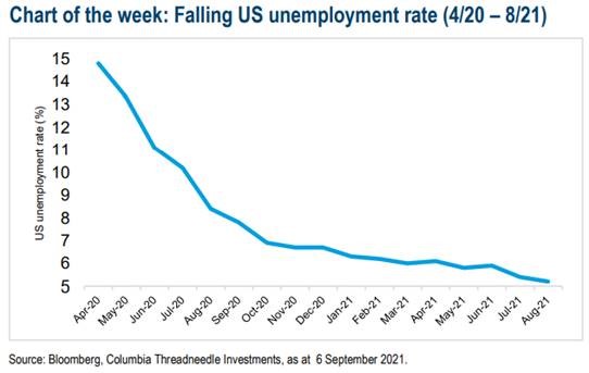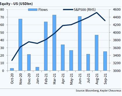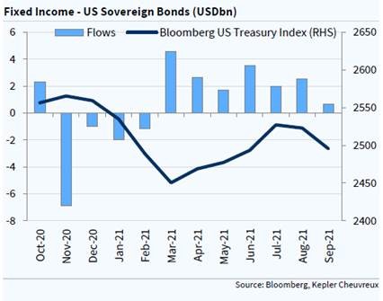 La creación de empleo en Estados Unidos decepcionó en septiembre (194.000 nuevos puestos frente a los 500.000 esperados) debido a la menor contratación provocada por la variante Delta en ocio y hostelería. Con todo, la tasa de desempleo cayó al 4.8% y el salario medio por hora creció un 4.6%. Los analistas no creen que estos datos pospongan el comienzo de la reducción en el ritmo de compras de activos (“tapering”) por parte de la Reserva Federal a partir de noviembre.