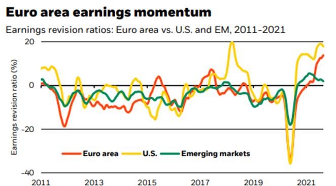 Es cierto que seguimos afrontando retos indudables: la inflación crece por encima que los salarios, algo negativo para el poder de compra, pero que debería paliarse cuando se suavice la inflación y se aceleren los sueldos (ocurrirán ambos factores en 2022), el coste de la energía también actúa lastrando el consumo, pero representa un 3% de nuestra cesta, y los precios energéticos se moderarán también el año que viene.
