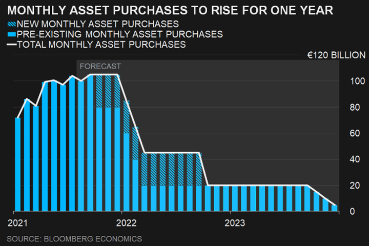 El BCE anunció ayer que reducirá sus compras de bonos en entre 10.000 y 20.000 millones, pero no hay compromiso más allá. Solo que en diciembre se volverá a revisar. El hecho de no tener un “acuerdo” con el mercado mantiene las posibilidades abiertas para elevar, reducir o mantener sus compras.
