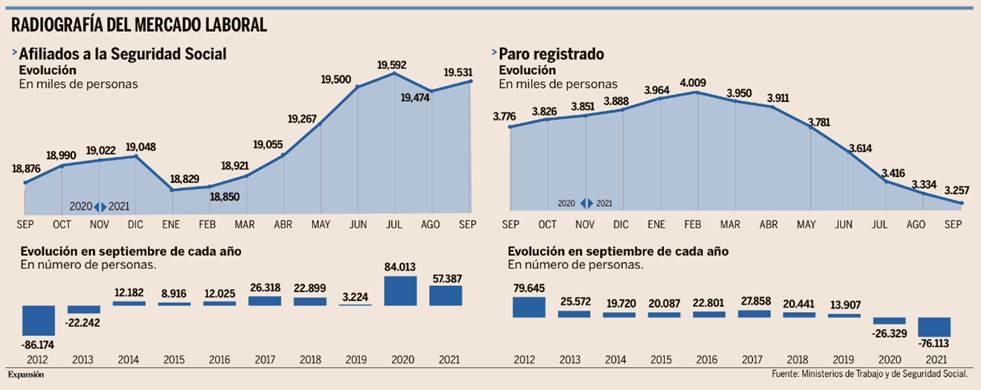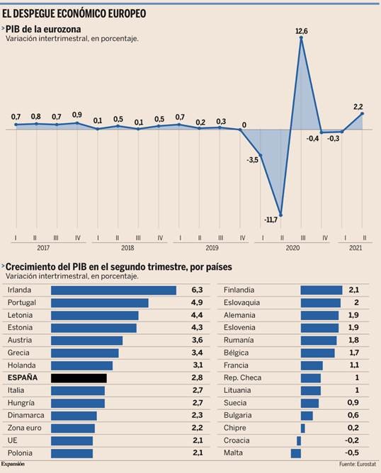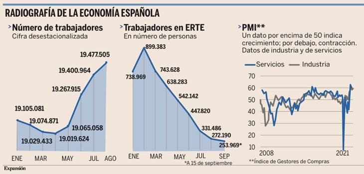 De hecho, la recuperación de la economía española estos últimos meses ha sido muy significativa, ya que ha ganado 3,8 puntos en nueve meses, cuando el resto de Europa quedaba mucho más golpeada por la segunda ola del coronavirus.