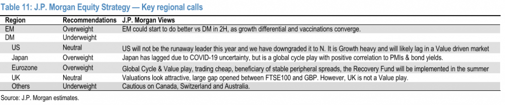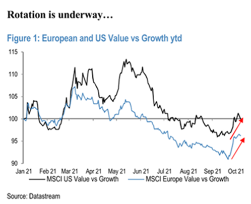 Esta semana JPMorgan publicó un informe de estrategia (The J.P. Morgan View Persisting inflation force supports market rotation) en el que los analistas esperan que la rotación hacia la gestión value continúe, tal y como rentabilidades de bonos soberanos e índices de sorpresa indican. Esta rotación también apoya su optimismo en mercados emergentes, sobre todo ahora que la ralentización china comienza a perder momentum, el dólar se va moderando y el gap de crecimiento, beneficios y vacunación frente a mercados desarrollados se va cerrando. Respecto a la situación de los países emergentes en este contexto de incrementos de inflación al final del mail adjunto un artículo de Ignacio de la Torre muy interesante.