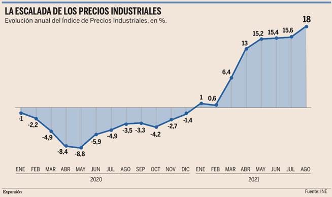 Pero los daños colaterales no acaban ahí. Este déficit energético se manifiesta en una escalada en los precios de la luz, mientras que el dopaje de las economías, los cuellos de botella en las cadenas de producción, el encarecimiento de las materias primas y el alto coste logístico están traduciéndose en una inflación previsiblemente transitoria, pero que no se sabe cuánto durará y si contagiará salarios u otros sectores.