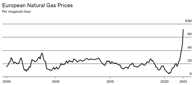 La reciente subida de los precios de la energía ha impulsado la inflación de la zona euro a los máximos de la última década. Mientras que este incremento de la inflación parece ser transitoria, o al menos eso dicen los analistas y los organismos oficiales, Bloomberg Economics sugiere que este incremento será el primero de muchos. La principal clave para que este incremento de los precios de la energía se vuelva a repetir es el “cambio climático” y los esfuerzos para corregirlo. El objetivo de emisiones cero que busca Europa seguirá presionando la inflación al alza.