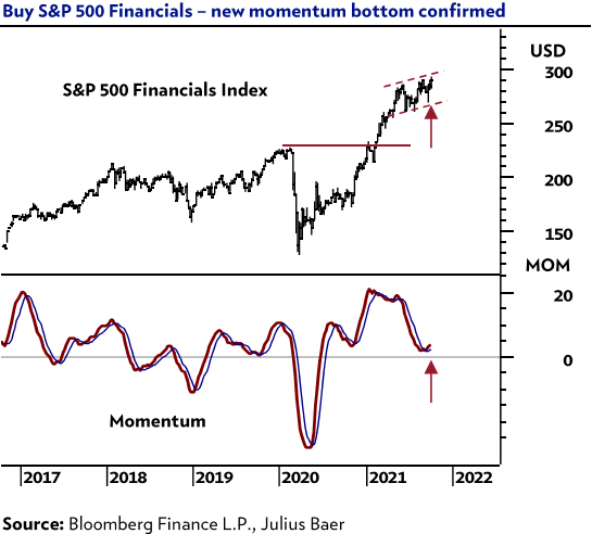 A más corto plazo, los precios de la energía deberían irse moderando, tal y como señalaban esta semana en su informe semanal los analistas de Julius Bäer, por motivos estacionales y la respuesta de la oferta, y el sentimiento inversor parece haber tocado suelo a principios de mes. Así, Julius Bäer mejoraba su visión sobre sectores cíclicos.