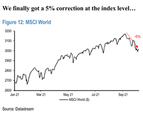 La corrección en los índices a nivel global ha sido muy contenida, de hecho el S&P 500 sigue muy cerca de sus máximos históricos (a menos de 30 puntos).