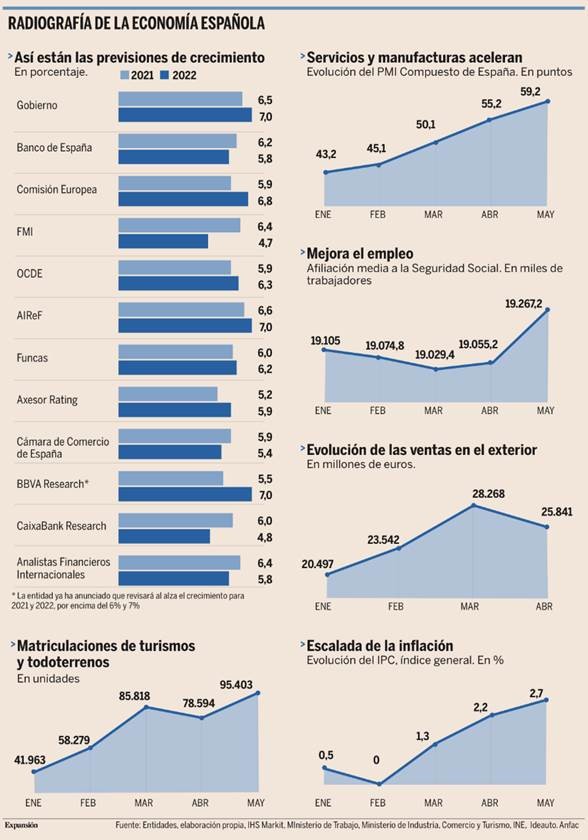 Se muestran más optimistas en cuanto a que el ritmo de recuperación se acelere si bien hay que seguir muy atentos a nuevos brotes, decisiones sobre restricciones a la movilidad y ritmos de vacunación.