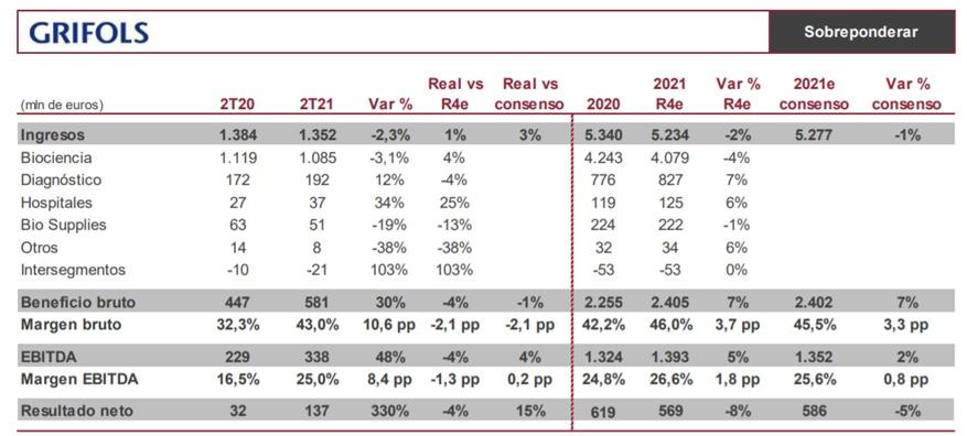 Grifols publicó resultados del 2T21 el jueves 29 de julio antes de apertura.