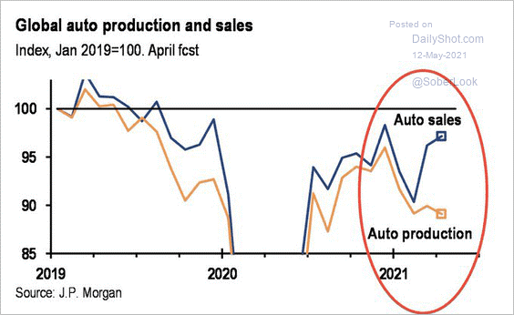 Un problema muy claro está en los cuellos de botella observados en los canales de suministro, los cuales han llevado a los componentes de precios del ISM a marcar niveles muy elevados y a generar escasez en algunos productos como en el caso de los semiconductores que a su vez afecta a la producción de coches. Esto ha provocado un aumento en su coste del 21%. Sólo eso ya habría supuesto 6 décimas en la lectura del IPC general.