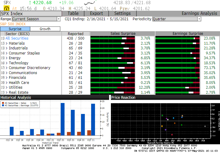 La semana pasada el ISM manufacturero estadounidense de mayo se situó en 61,2, frente a los 61,0 del consenso, junto con el ISM de servicios en 64,0, el más alto que hemos visto desde que se iniciaron los registros en 1997.