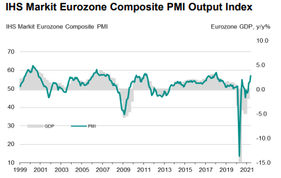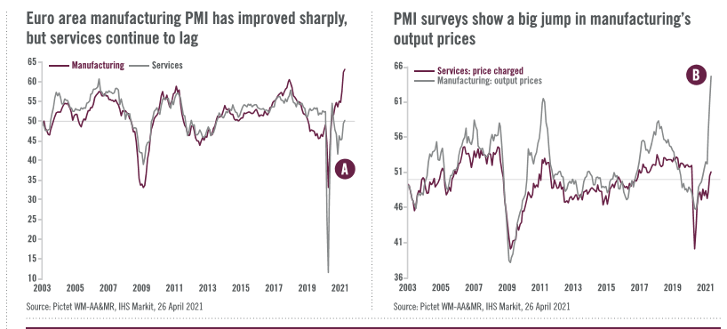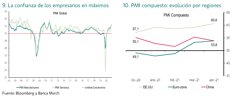 Luz al final del túnel: la recuperación empieza a vislumbrarse también en Europa, donde los PMI han mejorado fuertemente, aunque los PMIs de servicios todavía continúan lastrados por las restricciones.