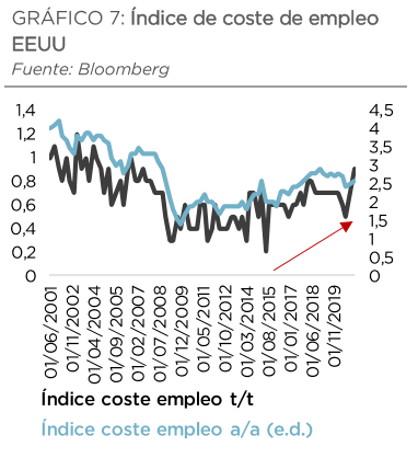 En el mercado laboral americano se están dando señales preocupantes, una de estas señales sería la dificultad que están teniendo las S&M companies americanas para cubrir puestos vacantes. Otra señal preocupante sería la publicación del índice de coste de empleo, cuya lectura del 1T21 se saldó con un incremento del 0,9% trimestral, lo que supone un dato bastante alto. Todos estas señales pueden generar que la inflación siga subiendo con fuerza y provoque que la Fed tenga que actuar sobre los tipos de interés o sobre sus programas de compra de deuda.