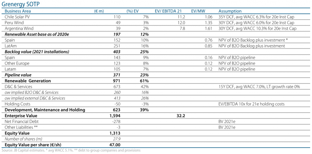 Los analistas de JBCapital tienen un precio objetivo de 47 euros por acción, lo que le da un potencial a la acción de un 80%. Estamos bastante de acuerdo con su valoración. En los últimos dos meses el sector renovable ha sufrido una corrección importante, algo que ha ocurrido a todos los sectores con más beta del mercado (Tecnología, biotecnología y renovables), en el ámbito del sector de energías renovables con mayor virulencia porque se habla de que puede estar produciéndose una nueva burbuja y hay muchos players que están en el sector con rentabilidades muy bajas y proyectos que difícilmente podrán ganarles dinero. Pero Grenergy es una compañía en el sector con proyectos muy buenos, que en cuanto pongan a operar rentabilizarán con ratios muy altos, de ahí que estemos muy cómodos con la posición a la que le perdemos un 7,40% a niveles de mercado de hoy.