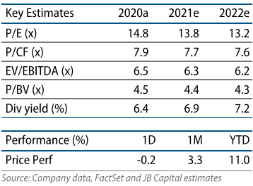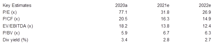 La compañía revisa al alza sus estimaciones de EBIT ajustado y ahora espera un crecimiento de dobledígito bajo (antes dígito sencillo alto, vs +7% consenso) aunque advierte que existe incertidumbre sobre la evolución de la pandemia y la economía y por ese motivo revisarán su guidance trimestralmente.La acción sube más de un +20% en el año. Nuestro precio objetivo está en torno a 25 euros por acción (potencial +35%).