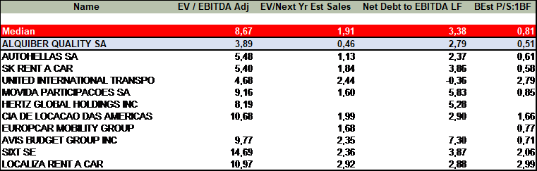 Alquiber cotiza con un gran descuento frente a sus comparables, seguirá creciendo de manera inorgánica y esperamos que a estos precios algún competidor decida comprarla.