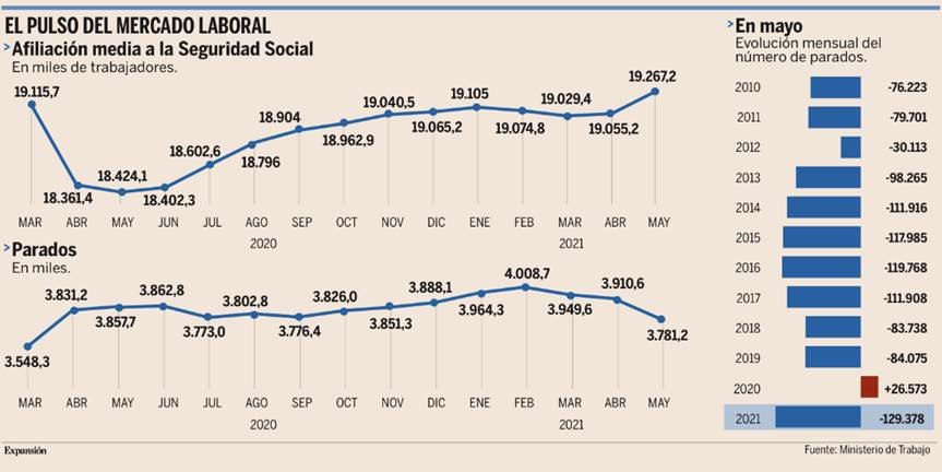 Esta semana la Comisión Europea dio luz verde al plan de recuperación de España y recibirá 19.000 millones de euros en 2021. “Estoy contenta de anunciar que la Comisión da luz verde al plan de España”, dijo la presidenta de la Comisión, Ursula von der Leyen. España tendrá acceso a 69.500 millones de euros en ayudas directas que irá recibiendo cada año hasta 2026. Pero el dinero no llueve gratis, y el Gobierno deberá demostrarle a la Comisión que está cumpliendo con las inversiones y reformas propuestas en su plan para ir ingresándolo. Una tarea nada fácil, si se tiene en cuenta que para aprobar reformas clave del plan será necesaria una mayoría parlamentaria ahora mismo inexistente (Al final del mail adjunto un artículo de Jose María Rotellar analizando este punto). Por lo pronto, España espera un desembolso de 9.000 millones de euros en concepto de prefinanciación del plan a partir de julio. Eso sí, aunque Bruselas ya ha salido a recaudar el dinero en los mercados (esta semana anunció la recolección de nada menos que de 20.000 millones que servirán para sufragar los primeros cheques), pasará todavía un mes hasta que los ministros de finanzas den la enésima luz verde.