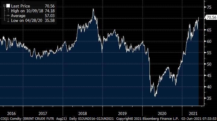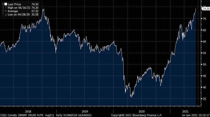 El precio del petróleo está en máximos desde el 2018, el petróleo subió el martes un +1,6% hasta los 74 $/bl. En la conferencia del Financial Times sobre commodities los principales operadores del mercado (Trafigura, Glencore y Vital) señalaron que el precio podría subir a 100 $/barril. Pero no sólo por la recuperación de la demanda, señalaron como problema la baja inversión de los últimos años. Además, la API apuntó a una caída de los inventarios americanos de 8,5 millones de barriles por día.