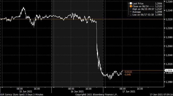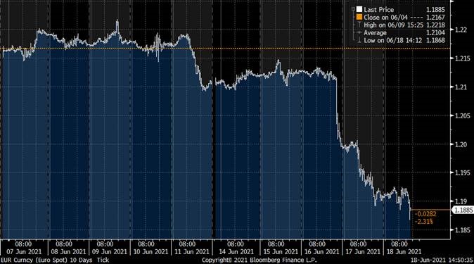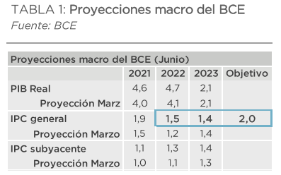 El miércoles fue la reunión de la Fed y para sorpresa de los mercados prevé una primera subida de tipos en 2023, la TIR del Bono a 10 años americano se fue del 1,48% al 1,59% y el dólar se revalorizó frente al euro desde el 1,2120 al 1,20.