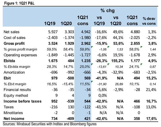Otros negocios: (-8,0% ventas económicas) continúa fuertemente impactada por el cierre de puntos de venta derivado de las medidas dictadas por el gobierno francés para luchar contra la pandemia. No descartamos que la compañía anuncie medidas de restructuración en esta división.