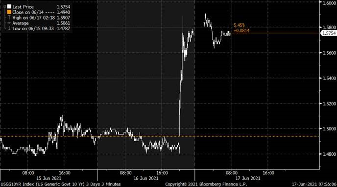Comentario interesante de PIMCO después de la reunión de la Fed: ”Interestingly, the more hawkish changes to FOMC participants’ rate path expectations came despite little change in the 2023 unemployment rate and inflation forecasts. This suggests less tolerance for an inflation overshoot than previously thought. We agree that the current bout of higher inflation will prove transitory. However, the risk of more persistent inflation hinges on inflation expectations remaining anchored. FOMC participants’ focus has shifted from managing downside risks to the economy to managing upside risks to inflation expectations. This prompted the committee to begin discussions of tapering, and revise its forecasts for the expected path of interest rates. Nevertheless, we think the FOMC is still firmly committed to its new monetary policy strategy, but if conditions once again change the Fed’s outlook, its outlook for the balance sheet and rates will once again change with it. Working backward from the new 2023 projected timing of the first rate hike, we think the FOMC could announce the first reduction in its bond purchase program as early as September”