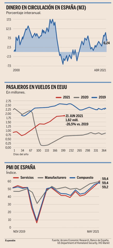 No es usual observar a los presidentes de los dos principales bancos del país ofreciendo en pocos días un mensaje unísono: la economía española sorprenderá al alza. El presidente del BBVA, Carlos Torres, afirmó de hecho que el PIB va a batir “todas” las previsiones. En realidad, no todas, ya que en Arcano Economic Research llevamos desde enero de este año defendiendo que los crecimientos de España en 2021 serían sensiblemente superiores a los que descontaba el consenso (entonces al 5,5% para este año, frente a nuestro estimado de un 8%; a fecha de hoy el consenso se acerca al 6,5%). Por eso fuimos tildados de “optimistas”. En realidad, fuimos realistas.