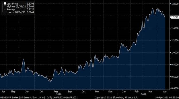 La rentabilidad del bono a 10 años americano ha caído 16pbs desde el 1,74% que marcó el 31 de Marzo al 1,57% actual, esta caída de la TIR y subida en precio del bono ha venido apoyada, según algunos analistas de mercado, por una mayor demanda desde Japón, mayor riesgo geopolítico (sanciones de EEUU a Rusia) y posibles cierres de cortos.