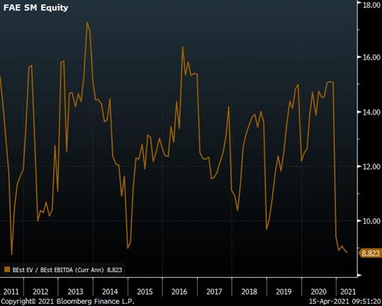 EV/EBITDA esperado últimos 10 años FAES FARMA.