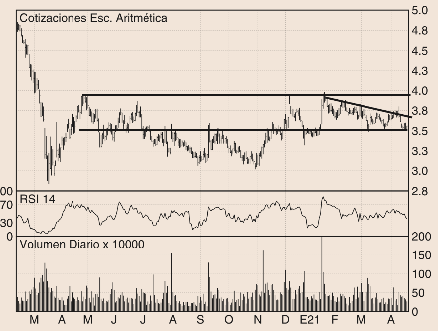 Desde el punto de vista técnico la acción de Faes Farma está evolucionando muy bien y espera obtener este año un beneficio antes de impuestos de 91 millones de euros, lo que supondrá volver a alcanzar, por séptimo año consecutivo, el resultado más alto de su historia. La subida de Enero fue muy violenta y ha vuelto por encima de los 3,5 euros por acción, desde donde intenta girar al alza. El primer objetivo técnico son 4 euros.