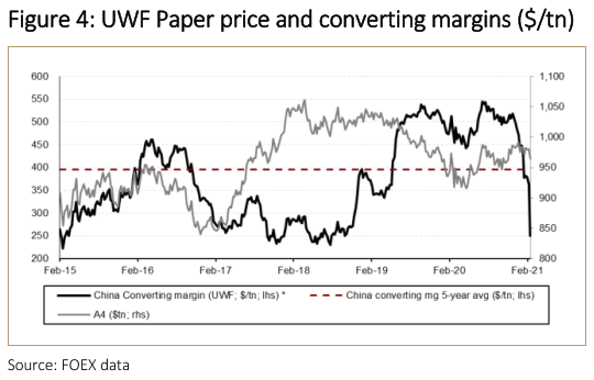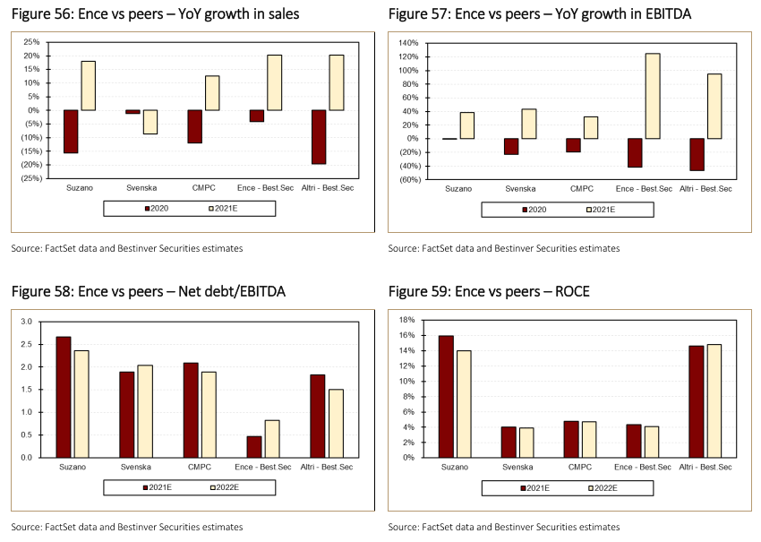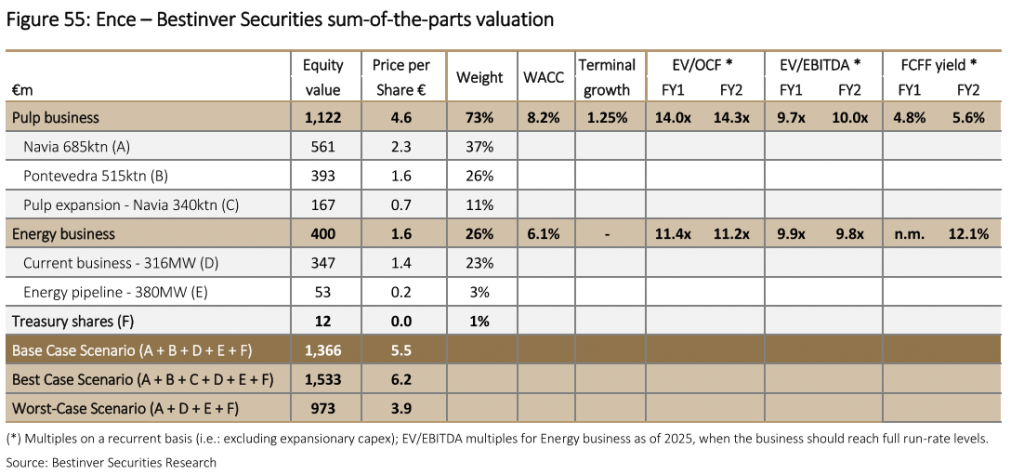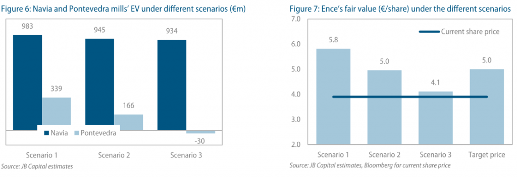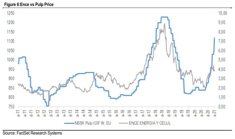 El lunes un bróker independiente, JBCapital, publicó un informe muy completo sobre la compañía en el cual incrementaban su precio objetivo un 19% (a 5 euros por acción), muy en línea con nuestra valoración. Además JBCapital subía su recomendación a “Comprar” debido fundamentalmente al impulso de los precios de la celulosa y al sólido balance tras el cierre de las transacciones de energía que permitirán a la compañía continuar con sus planes de crecimiento, tanto en celulosa como en energía.