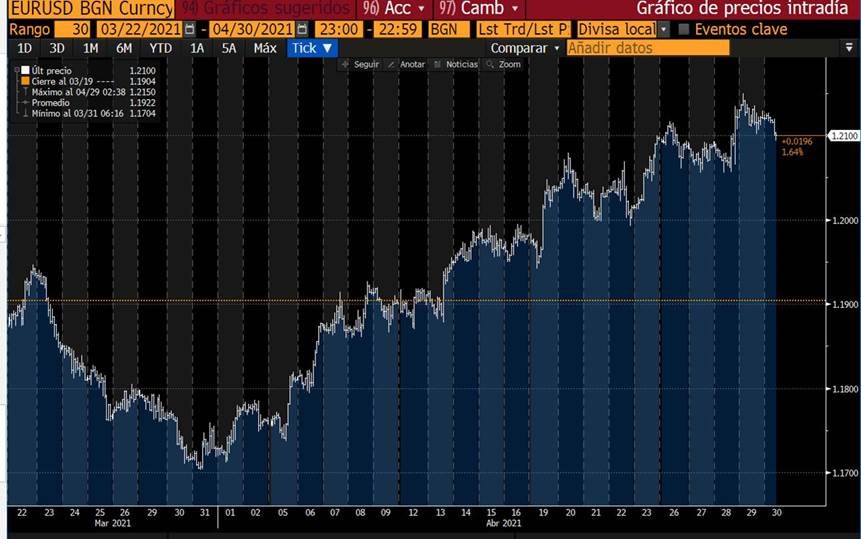 Parece que la reunión que será importante y podrá traer novedades es la reunión de Junio del BCE, donde las nuevas proyecciones macro del staff técnico del BCE deben dar pie a tomar decisiones sobre la evolución del PEPP. Lagarde señaló que espera dar el resultado de la Revisión de la Estrategia de la Política Monetaria para finales de este año. En este sentido, no quiso valorar lo que puede llegar a ser el documento, aunque sí dejó claro que el Consejo tendrá una mente abierta y que se valorarán todas las propuestas, incluso aquellas más alternativas.