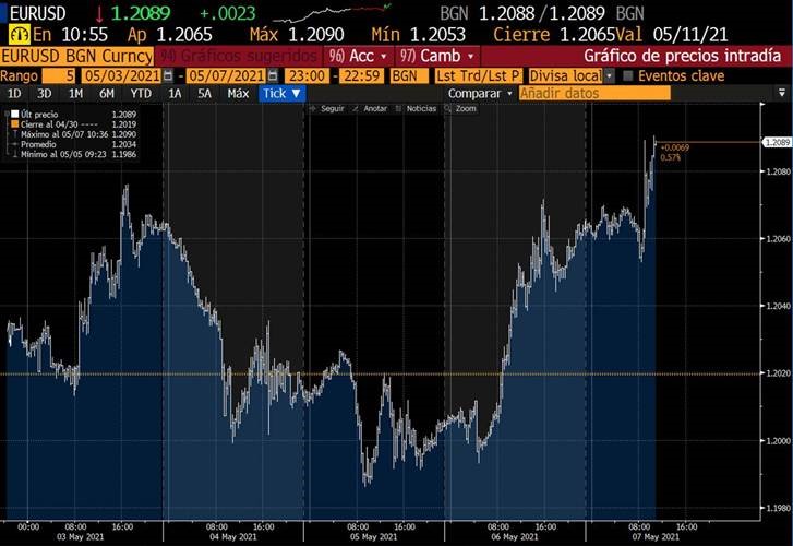 Reunión del FOMC: Sin Razones para Cambiar el Paso Antes de Tiempo. El “Federal Open Market Committee” de esta semana ha reconocido la clara mejoría del perspectivas económicas en Estados Unidos a la vez que insiste en la naturaleza temporal de muchos de los efectos (sobre todo los fiscales). De ahí la necesidad de mantener un política monetaria laxa, a la espera de ir recibiendo más datos que confirmen la recuperación (la inflación alcanzará el 4% en mayo, pero la media de los últimos 18 meses sigue siendo inferior al 2%). Este posicionamiento debería dar soporte al mercado y debilitar el dólar.