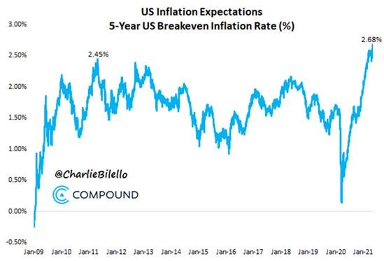 Algo que debería preocupar son los repuntes de la inflación y de los precios, aunque los Bancos Centrales digan que es algo temporal y no se les ve preocupados por el repunte de la inflación.