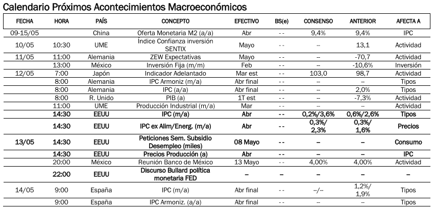 En materia de vacunas, hoy en Estados Unidos la FDA y el Centro para el Control de Enfermedades (CDC) podrían anunciar sus conclusiones sobre la vacuna de Janssen Cilag (Johnson & Johnson), actualmente en revisión tras los efectos secundarios surgidos (trombos). El pasado martes el comité de seguridad de la EMA concluyó que los beneficios superan los riesgos, reanudando el suministro de dosis a Europa, donde habrá que comprobar el impacto sobre la confianza ciudadana. Aunque en el caso de Estados Unidos la dependencia de la vacuna de J&J es menor que en Europa, el mercado prestará atención a la decisión.