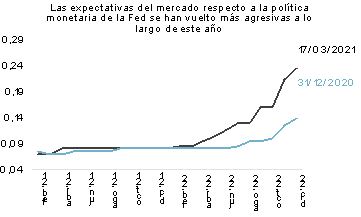 El miércoles se publicaron las Actas de la Fed que mantuvieron una visión bastante prudente sobre la economía a pesar del fuerte crecimiento esperado para 2021, lo que aleja la probabilidad del tapering antes de 2022. Así, los miembros han vuelto a insistir en que las medidas adoptadas por la pandemia se mantendrán a medio plazo por el balance de riesgos, ya que ven muy lejos alcanzar los objetivos de inflación y pleno empleo. En este sentido, varios miembros esperan un repunte de inflación en los meses centrales del año pero de carácter transitorio. Por último, advirtieron sobre la creciente vulnerabilidad de la estabilidad financiera y del sector inmobiliario.