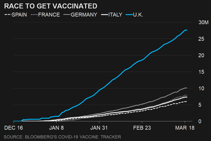 La Casa Blanca también lanzó un mensaje de optimismo esta semana al poner como fecha límite el 19 de abril para que todos los adultos en Estados Unidos tengan a su disposición una dosis de alguna de las vacunas contra el COVID-19. Todo esto en conjunto volvía a incrementar aún más la sensación de que nos acercamos a una rápida recuperación económica en Estados Unidos