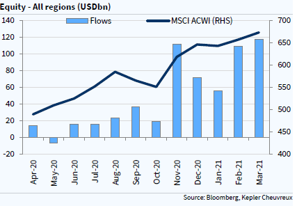 Los flujos de los inversores además se aceleran en Europa de nuevo en este último mes de Marzo: