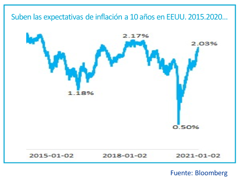 Lo más probable es que la inflación repunte apoyada en unos precios del petróleo muy superiores a la media del año pasado, pero también gracias a una economía en recuperación, una política monetaria extremadamente acomodaticia y un elevado gasto de los gobiernos (política fiscal).