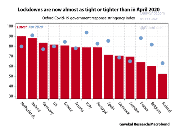 En primer lugar los programas de vacunación están funcionando mucho más lento en varios países de lo que se había planeado y además no está claro en qué medida son eficaces las vacunas contra las nuevas mutaciones del virus, ya no hablamos de flexibilización de medidas o de apertura, todo lo contrario. Esto implica efectos negativos en las economías, (el IFO el lunes es buena muestra de ello).