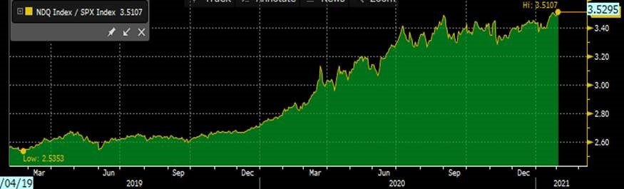Ratio Nasdaq 100 Versus S&P500 > 3,5x