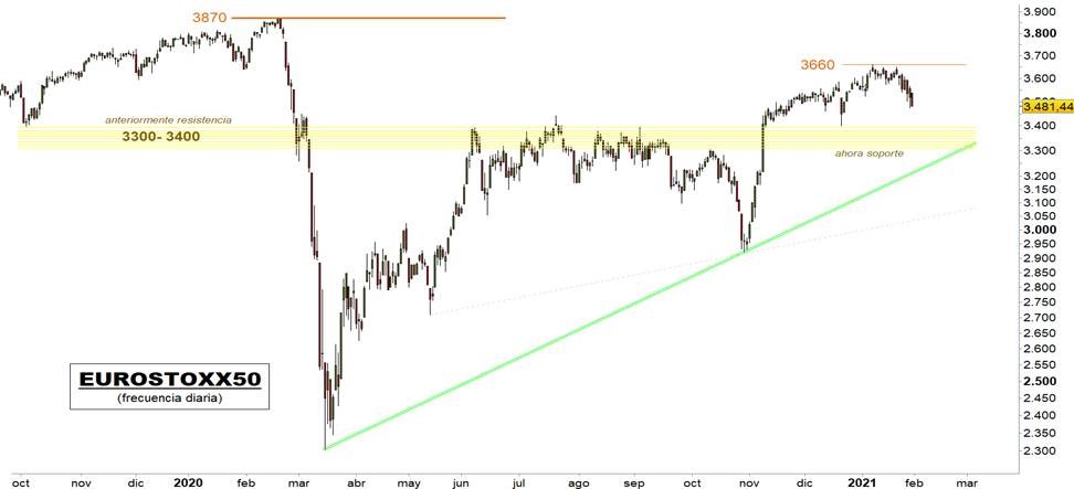 – Retrasos en el paquete de ayuda fiscal de EEUU . El nuevo líder del senado americano, Schumer, dijo que podrían pasar de 4 a 6 semanas para que se apruebe un nuevo plan de estímulos, y que seguirán adelante sin el apoyo de los republicanos si es necesario.