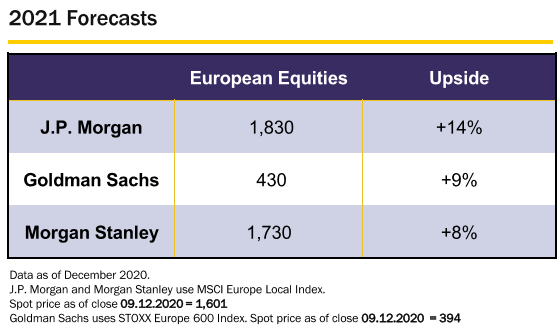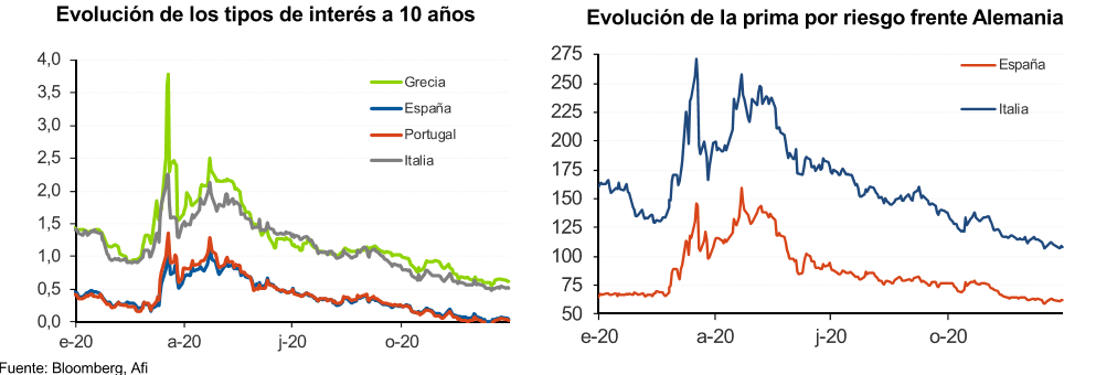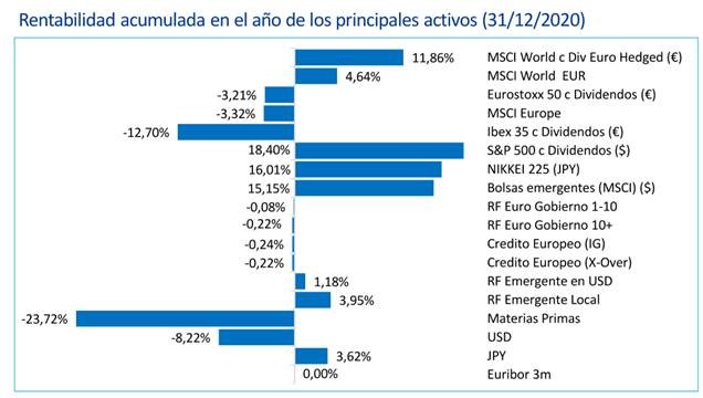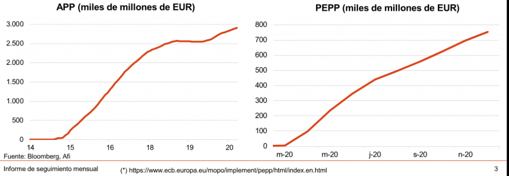 A pesar de un repunte significativo en casos y fallecimientos por Covid en Europa y Estados Unidos, diciembre fue testigo de las primeras vacunaciones, de la aprobación del paquete de 900 mil millones de dólares de ayudas americanas (los cheques de 600 dólares a ciudadanos con rentas por debajo de 75mil dólares están siendo distribuidos con toda rapidez) y de la aprobación del plan de ayuda europeo (a pesar del bloqueo inicial de Polonia y Hungría). Este último plan allana el camino para la aprobación de un paquete de ayuda financiera por valor de 1,8 billones de euros para proyectos sobre todo sostenibles.
