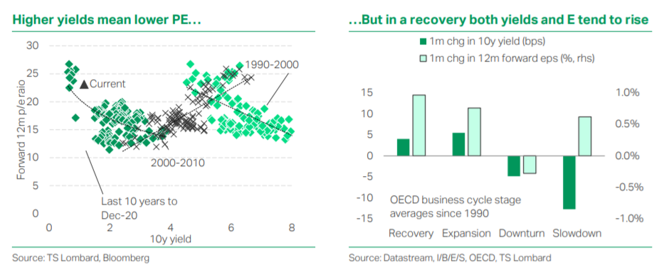 JPMorgan espera que la mejora en el crecimiento lleve a una disminución en el desempleo (por debajo del 5% este año, cerca del 4% el que viene) y una mejora en la inflación, la cual debería de caminar hacia el 2%, pero no creen que lo sobrepase. No creen que las condiciones vayan a apoyar una subida de tipos hasta 2024, aunque sí que ven la posibilidad de que el Outlook siga mejorando. Tanto como para que la Fed piense en comenzar con el tapering de las compras de activos a finales de año. Las declaraciones de algunos presidentes regionales de la Fed parecen ir en esta dirección.