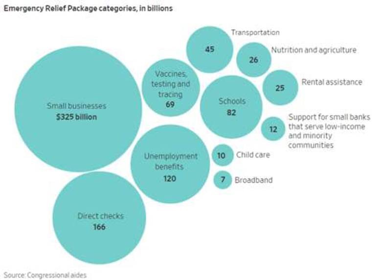 Este paquete de ayudas fiscales probablemente incluirá cheques. El Senador Schumer, próximo líder del Senado ya ha dicho que los cheques de 2.000$ serán una prioridad. Si esto se pareciese en algo a la versión de diciembre, entonces estaríamos antes un incremento de 1.400$ sobre los 600$ actuales aprobados como parte del Response & Relief act. Una inyección de 464 billones de dólares directa al bolsillo de los consumidores. El otro foco de este paquete fiscales debería de ser la ayuda a gobiernos locales y estatales. A pesar de lo sorprendentemente bien que están aguantando sus ingresos, los analistas de JPMorgan creen que habrá una partida para ellos. Creen que este paquete será pasado bajo el Budget reconciliation process dado que los demócratas no tienen los 60 asientos necesarios en el Senado. Este paquete debería de dejar un déficit fiscal de 3.2 trillones de dólares para final del 2021 (14.4% del PIB) y 2.1 trillones para el 2022 (9%).