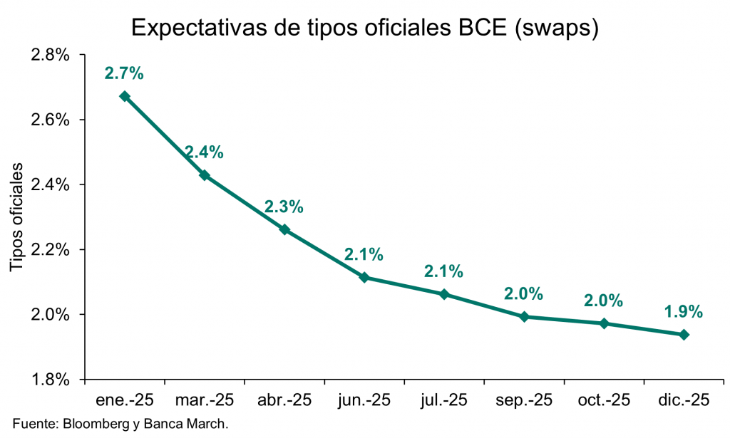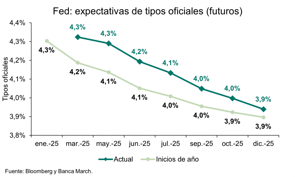 Lagarde afirmaba esta semana que es previsible que se incumpla el objetivo de inflación del 2% del Banco Central Europeo más a menudo en un contexto de incertidumbre excepcionalmente alta (tensiones comerciales, incremento del gasto europeo), lo que apunta a mayor cautela respecto a nuevas bajadas de tipos, la mayoría de analistas esperan una pausa en la política de bajadas de tipos en la reunión de abril.