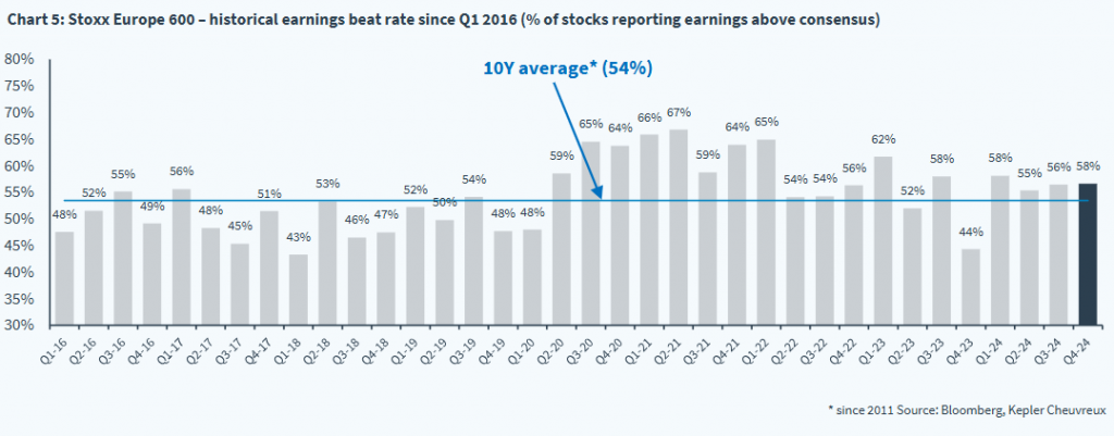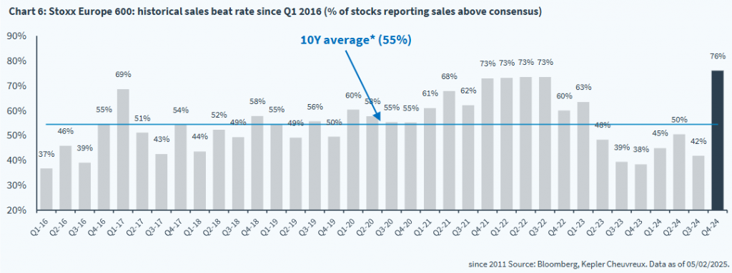 En Europa, Eurostat revisó al alza el crecimiento del PIB del cuarto trimestre del 2024 al +0,2% trimestral frente al +0,1% anterior.